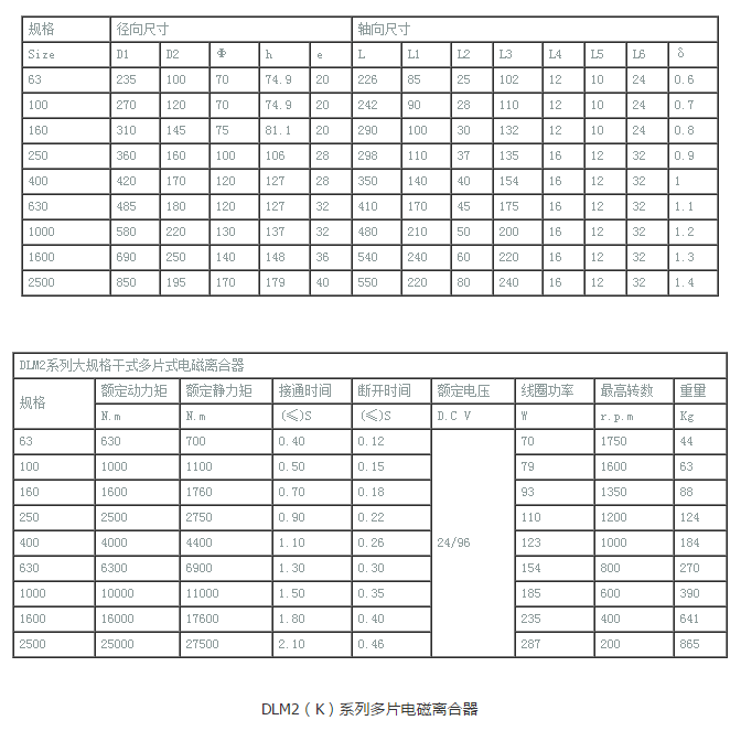 DLM2(K)系列多片电磁离合器是我国80 年代中期引进西德EKE品种,结构合理,可采用在快速动作下的场合。摩擦片有半湿式(G)和干式(S)两种,均能达到标准要求。